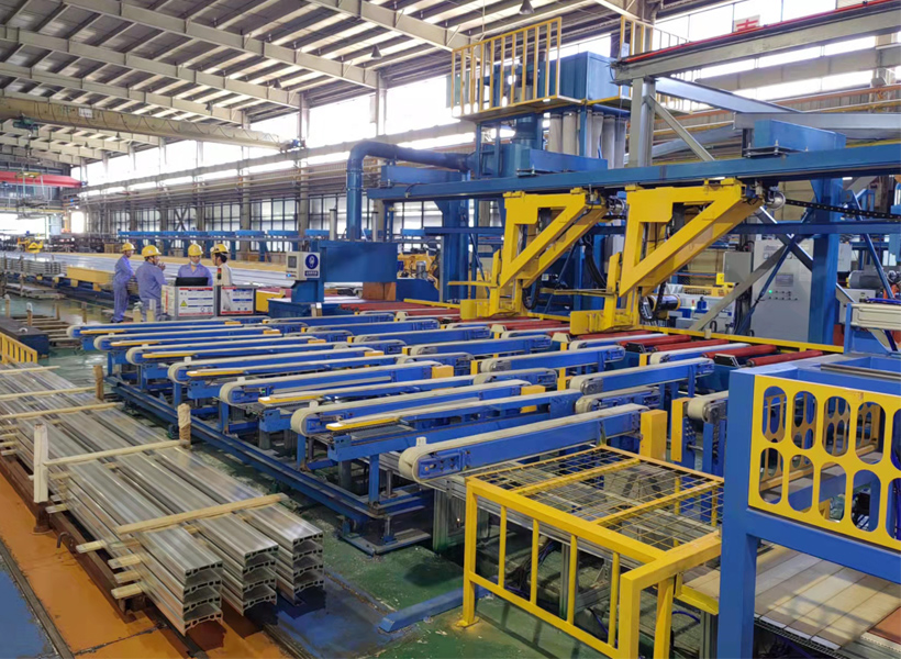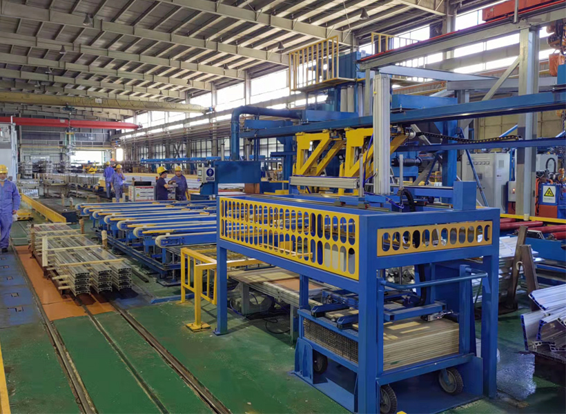 5、型材摆列整洁、距离平均,能调剂间距,装框进程中活动安稳,柔柔,型材之间不碰撞及发生变形、擦碰伤等型材品质题目。